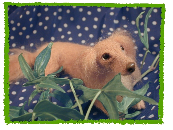 そらくんの被毛はゴールド、画像では分かりにくいのですが、キラキラとした光沢のある羊毛を使用しています。