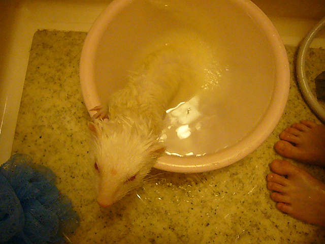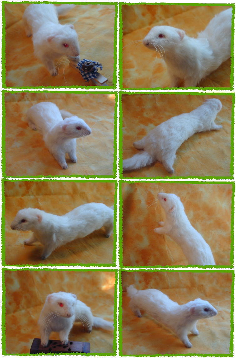 | ・Cさまオーダー、アルビノ・フェレットの空くん 頂いた写真の空くんあまりに可愛くてどれも寝相ばかりになってしまいました…(だって可愛いんだも〜ん (^^;) 見てください、この無防備な四肢(笑)…かっ、可愛い過ぎる〜(≧∀≦) 現在3歳の空くんはアルビノなので綺麗な白い被毛と赤い瞳を持ったフェレットです♪ 性格はおっとりとして甘えん坊なのですが、猫のふーしゃー攻撃をモノともせず近づいて行き、 以前お預かりしたにゃんことも仲良くなってしまったのだとか(笑) お風呂も大好きで、洗面器の湯船で長湯を楽しむ仲々ツワモノ・フェレットです! 今回は初めてのフェレット制作でやや戸惑いましたが、沢山の参考写真を頂き助かりました!!! 空くん、いつまでも元気で大好きなご家族とお風呂楽しんでねーー(*^o^*)/ |