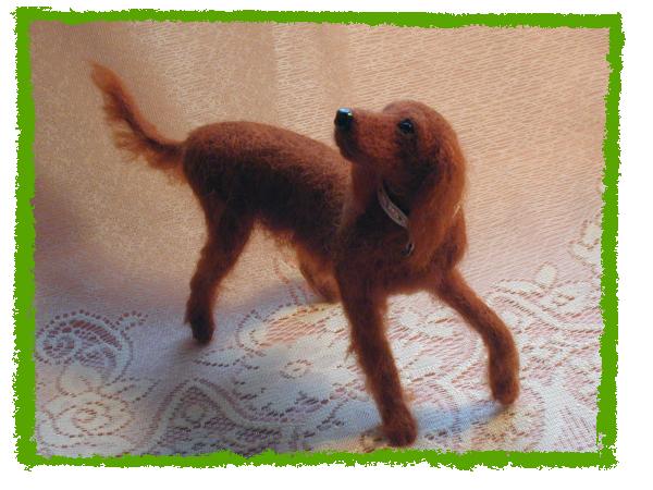 | ・Sさまオーダー、アイリッシュ・セッターのアリスちゃん 沢山のワンコ達と一緒に北の大地で幸せに暮らしているアリスちゃん。 御歳11歳だそうです。 一番の長女さんだけれど、まだまだ若いものには負けません(笑) キラキラ輝く被毛と抜群のスタイルで仲間達と走り回っているとのこと。 最近はお顔が大分白くなってきたそうですが、頂いたお写真の頃の艶々キラキラの被毛でお作りしました^^ 賢人ならぬ賢犬(笑)?らしく 知的な瞳と猟犬らしい颯爽とした佇まいがとても絵になっています♪ リクエストは躍動感のあるポーズでしたので、走るの大好き!そんなアリスちゃんの思いを込めてみました^^ |